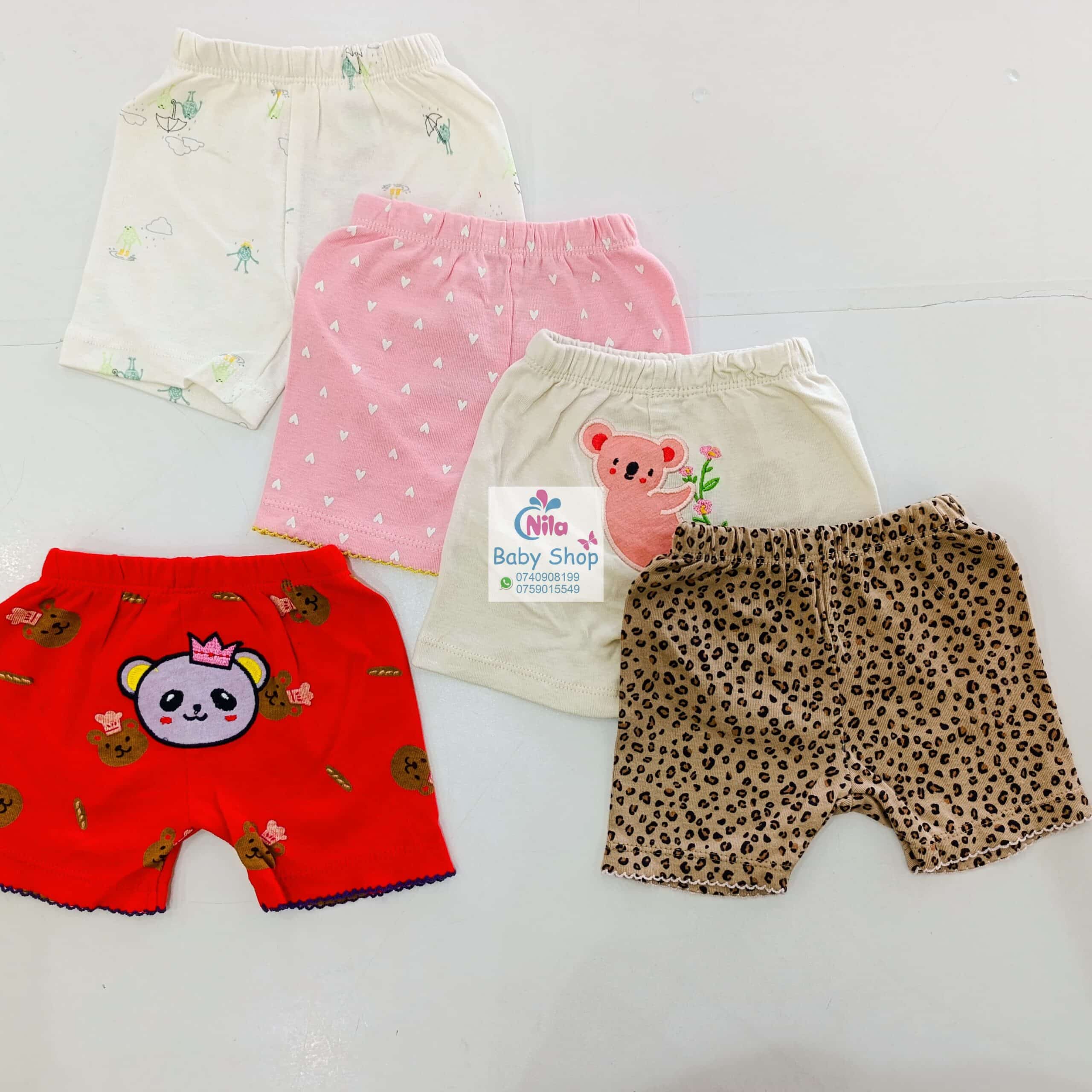 KShs 1,600.00 – KShs 2,500.00Price range: KShs 1,600.00 through KShs 2,500.00Select options This product has multiple variants. The options may be chosen on the product pageCotton baby girl pants, five-pack. The pants vary in design, meaning each pack has a different pattern. They are constructed of cotton, which is breathable and kind on baby’s skin, and come in various lovely colors and designs. Good quality