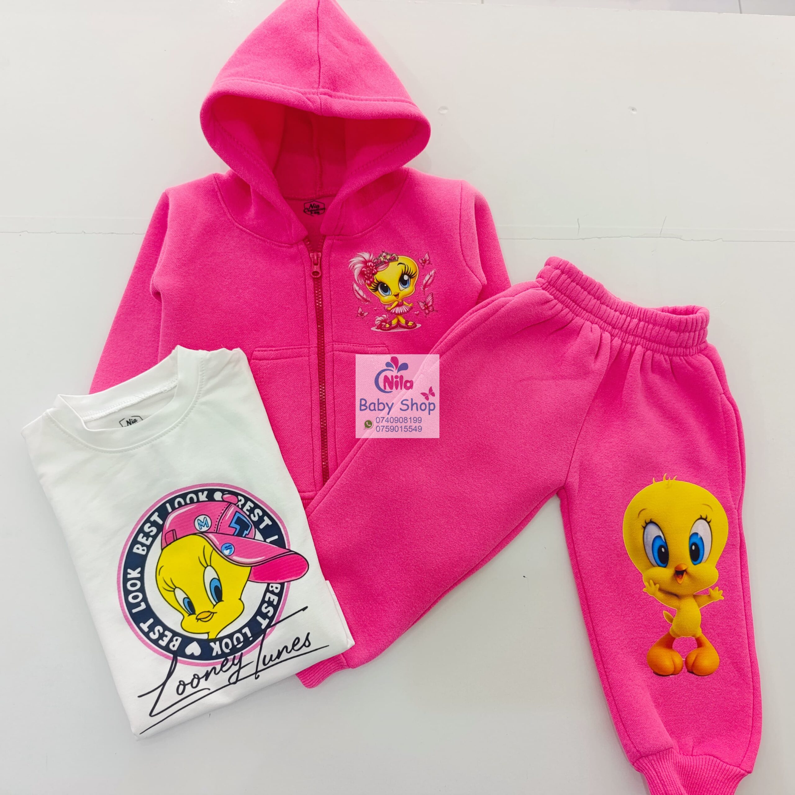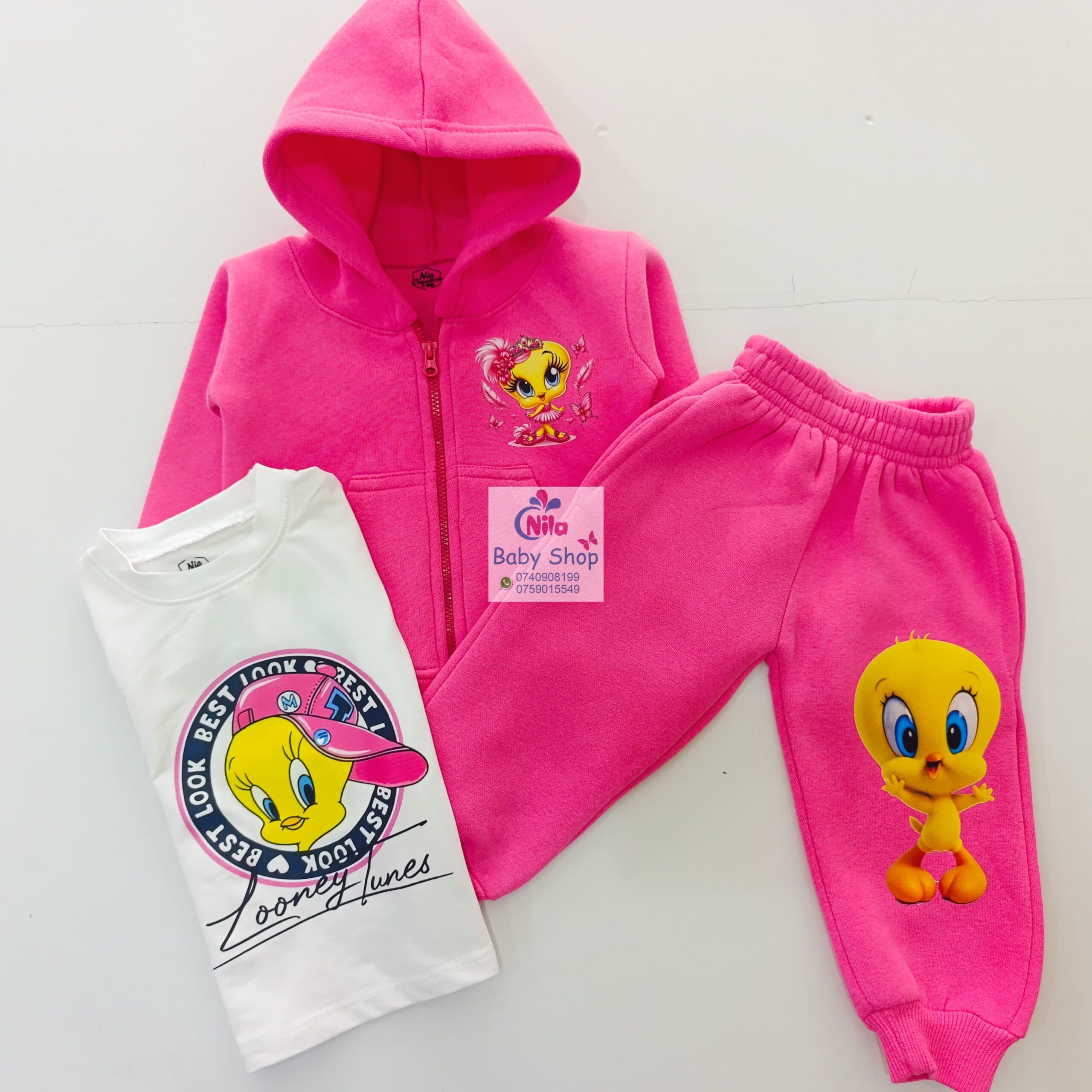 Bright, playful, and impossible to miss. This pink cartoon tracksuit set is made for little girls who love color and character. Featuring vibrant animated prints on both the hoodie and joggers, it brings fun into everyday wear while keeping your child warm and comfortable.