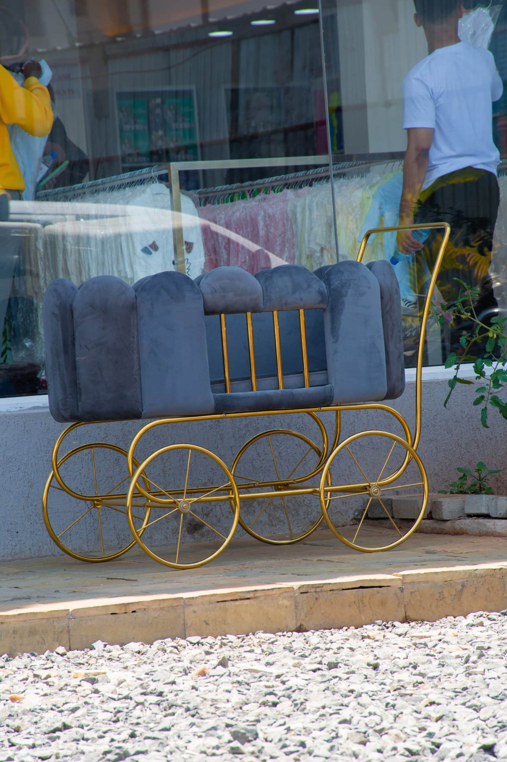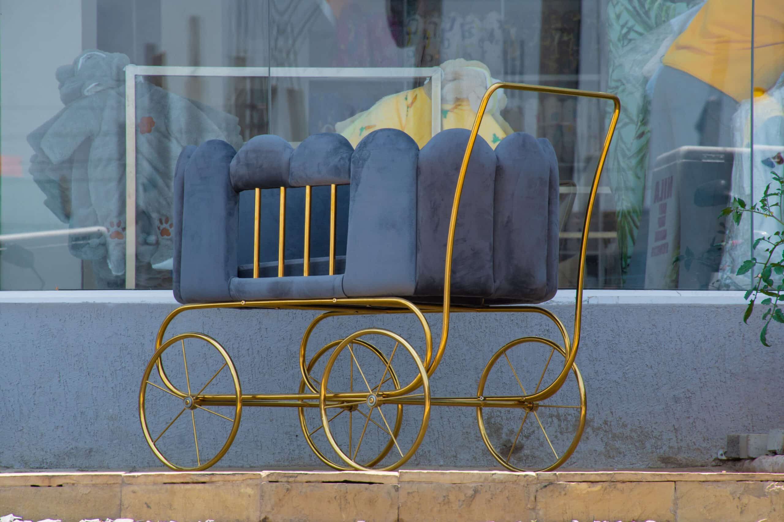 The elegant gold frame and wheels add a touch of sophistication, making it stand out wherever you go. Designed with durability and safety, this stroller features a sturdy construction and smooth-gliding wheels for effortless mobility. The unique, padded cloud-like design offers extra cushioning and protection, keeping your baby snug and safe.