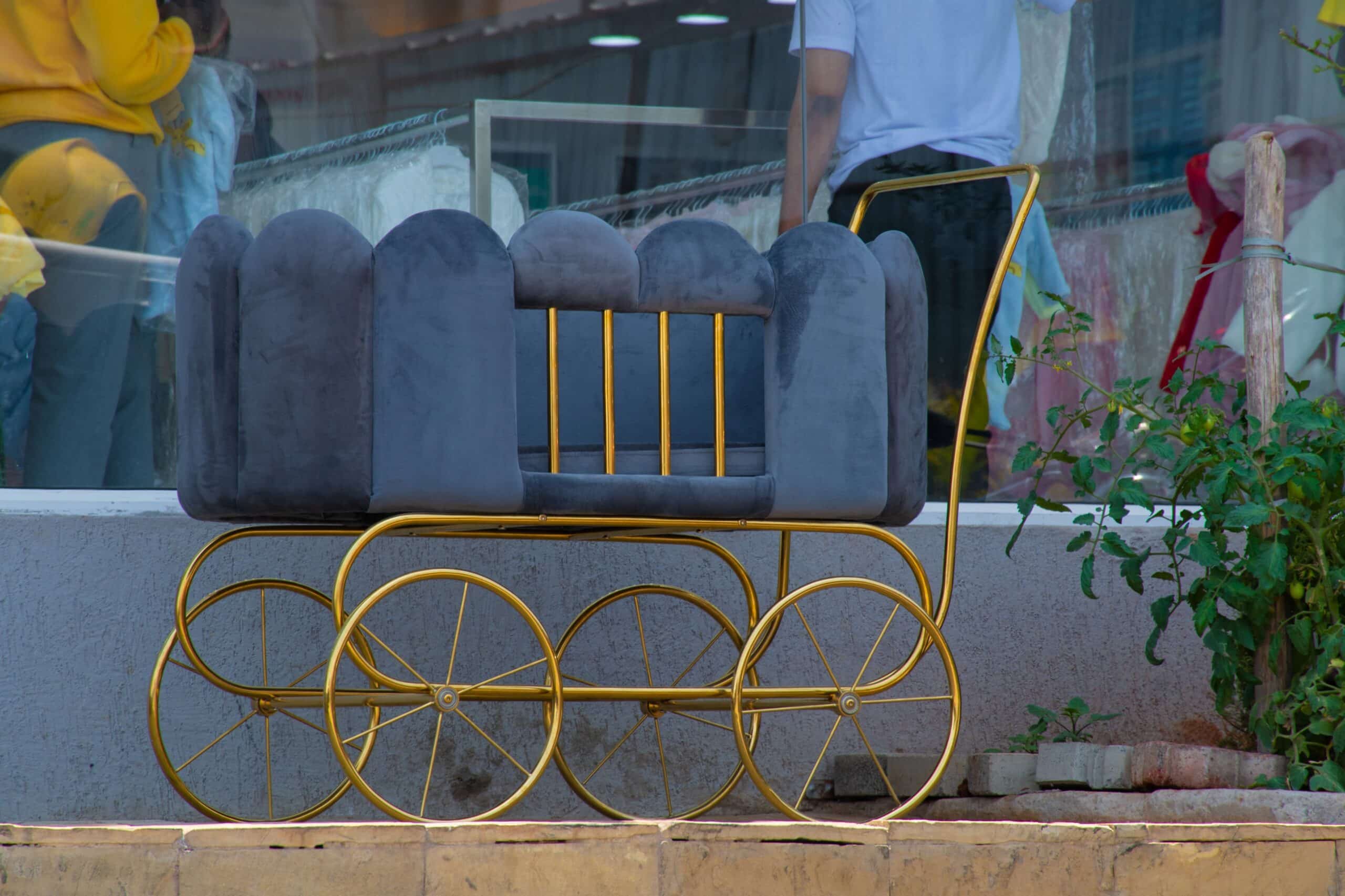 Luxury Velvet Baby Bassinet Stroller – Gold Frame
